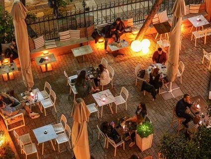 Gemütliche Bar mit Live-Musik und entspannter Atmosphäre. Perfekt, um sich drinnen oder draußen mit Freunden zu treffen, ohne sich zu verschulden.0,8 km, 11 Minuten zu Fuß