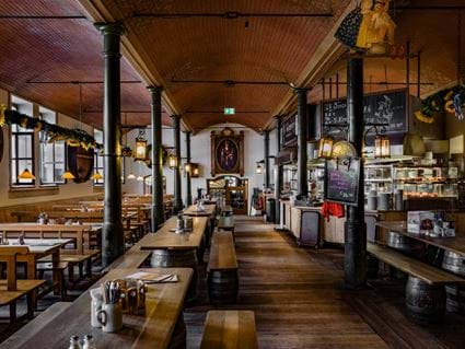 Für Einheimische und Touristen. Genieße Schweinehaxe oder Schnitzel mit einem Glas der besten Biere Deutschlands (oder auch zwei).1 km, 11 Minuten zu Fuß