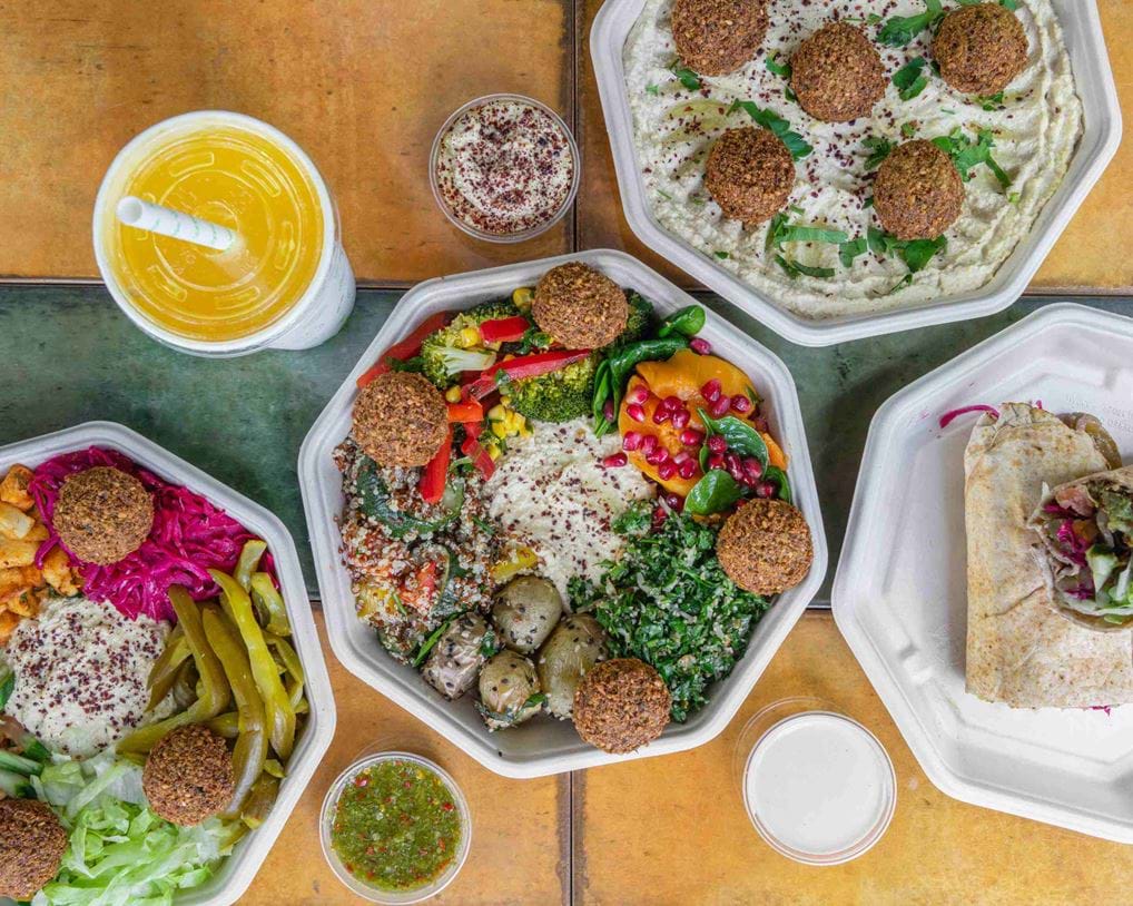 Upgrade your order with herby rice stuffed vine leaves and tabbouleh salad. Or get an extra boost of antioxidants and vitamins with a super fruity smoothie or cleansing juice. Don’t wanna go out? No problem. Order in to your Manchester Locke apartment via Deliveroo or Uber Eats.