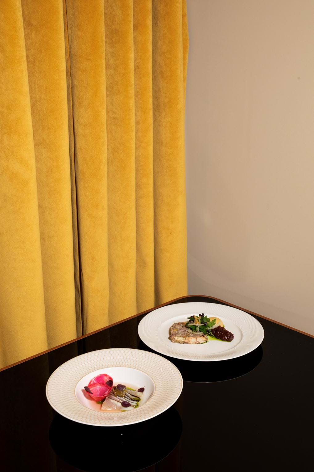Featuring floor-to-ceiling windows, decadent materials and textures creating a distinctive balance between hard and soft materials. The central bar sits between the restaurant and lounge. Bespoke furniture pieces designed by Sella Concept line the windows and restaurant space. Terracotta, green and yellow finishes mixed with stainless steel, microcement and high gloss paints create an intimate and dynamic atmosphere.