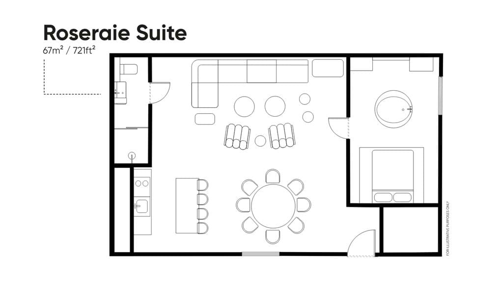 Capacity: 8 seated in both rooms. 20 standing in the Roseraie Suite.